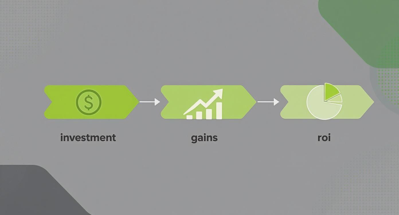 This graphic illustrates the financial journey from investment to operational gains and the final calculated ROI.