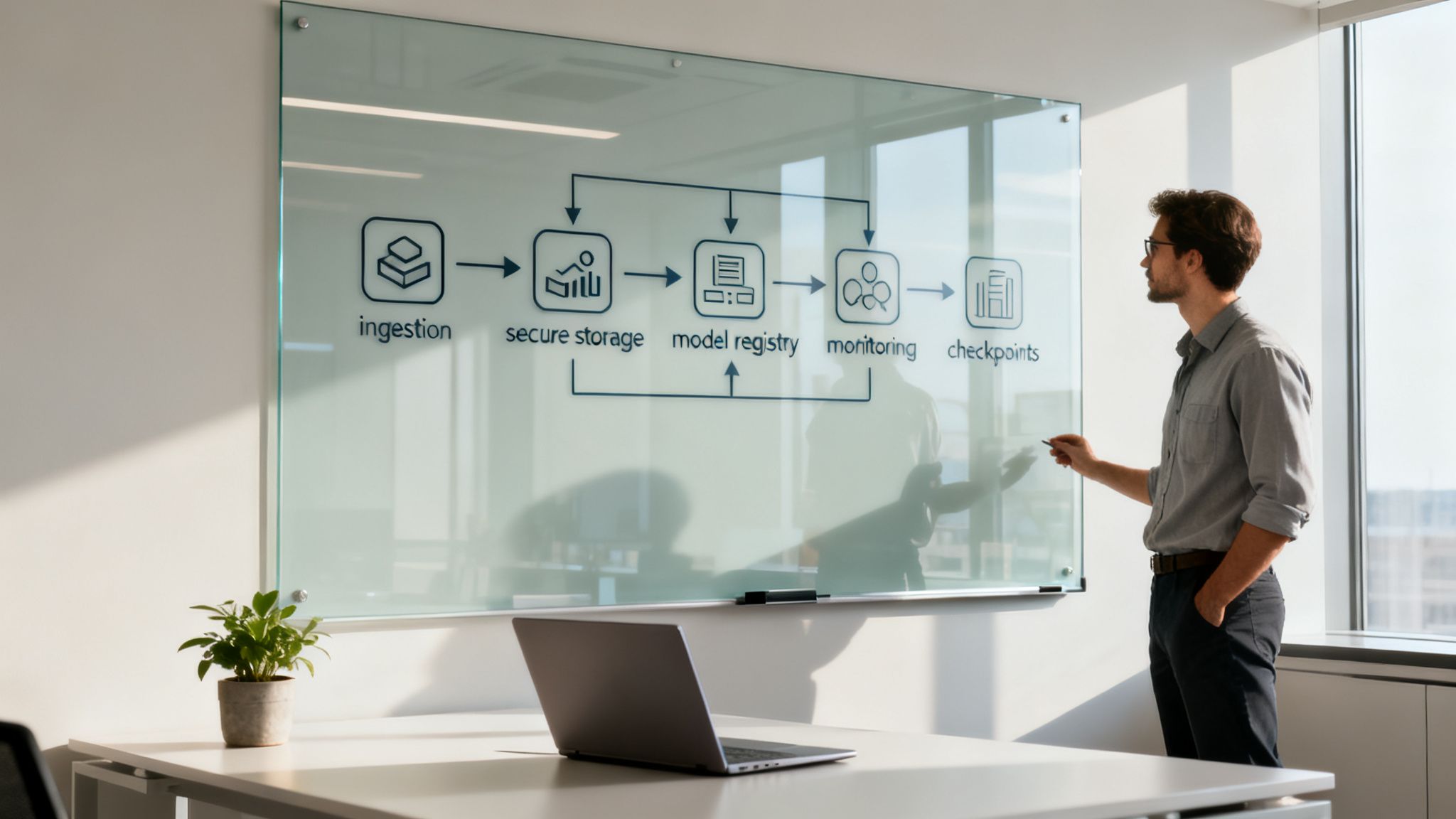 Week 2: Architectural Blueprint: Using insights from week one, we design a compliance-ready AI architecture tailored to your environment. We define data workflows, select components for the model registry, and map out the monitoring framework. The design is technology-agnostic to avoid vendor lock-in.