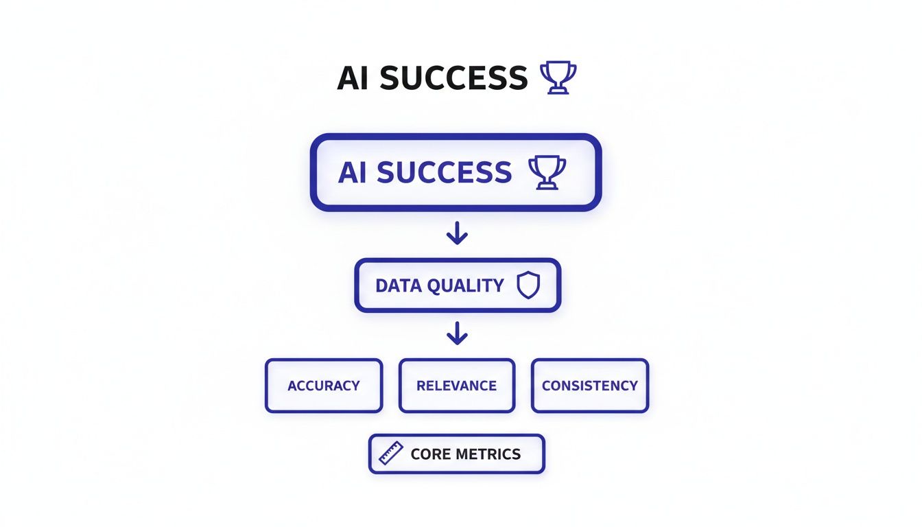 These are not just technical terms; they are business concepts that answer fundamental operational questions. By approaching them as a unified framework, you can turn abstract quality goals into a concrete action plan to protect your AI investments. This hierarchy shows how core metrics form the foundation for data quality, which is non-negotiable for AI success.