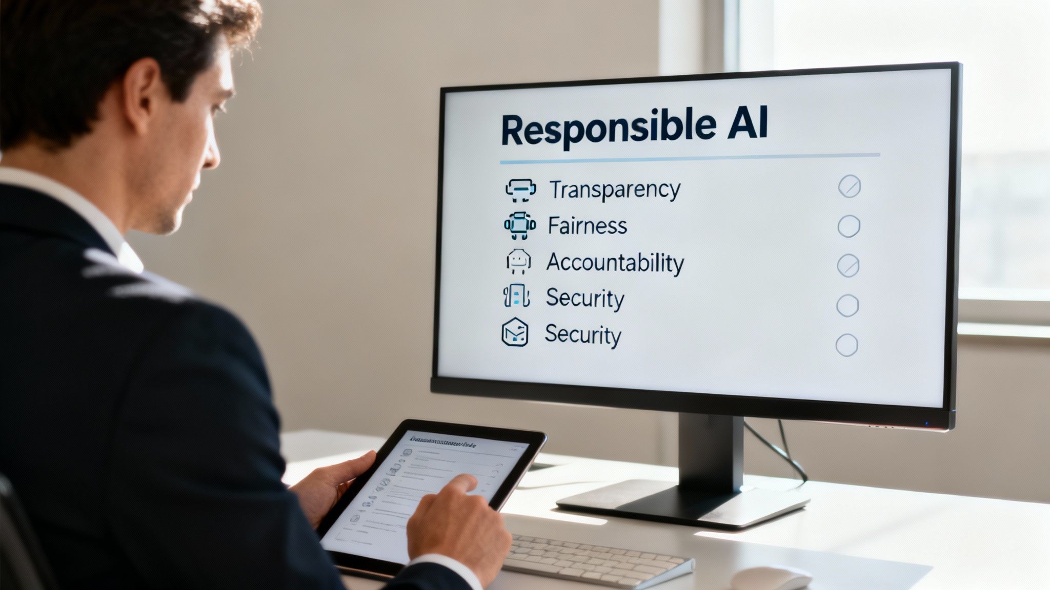 - Fairness: Actively test for biases in your models that could create unfair outcomes. This requires rigorous testing before deployment and continuous monitoring afterward.