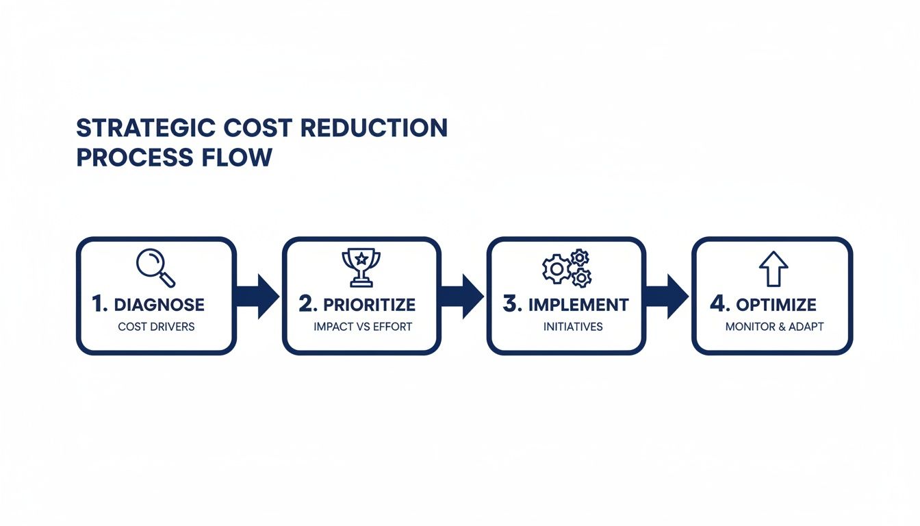 A successful cost-reduction initiative follows a clear, repeatable lifecycle. This visual flow outlines the four core stages, moving from initial diagnosis to ongoing optimization.